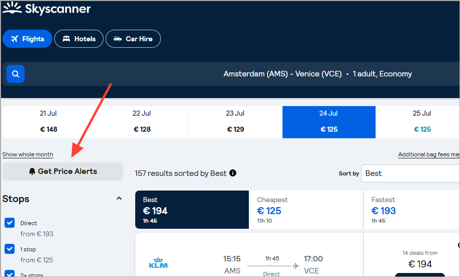 - Skyscanner/Kiwi: Enable email or app alerts